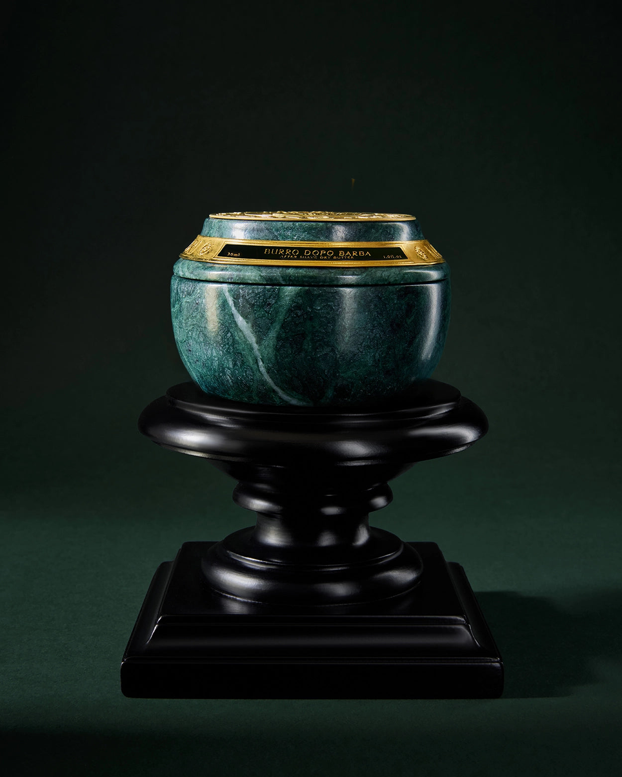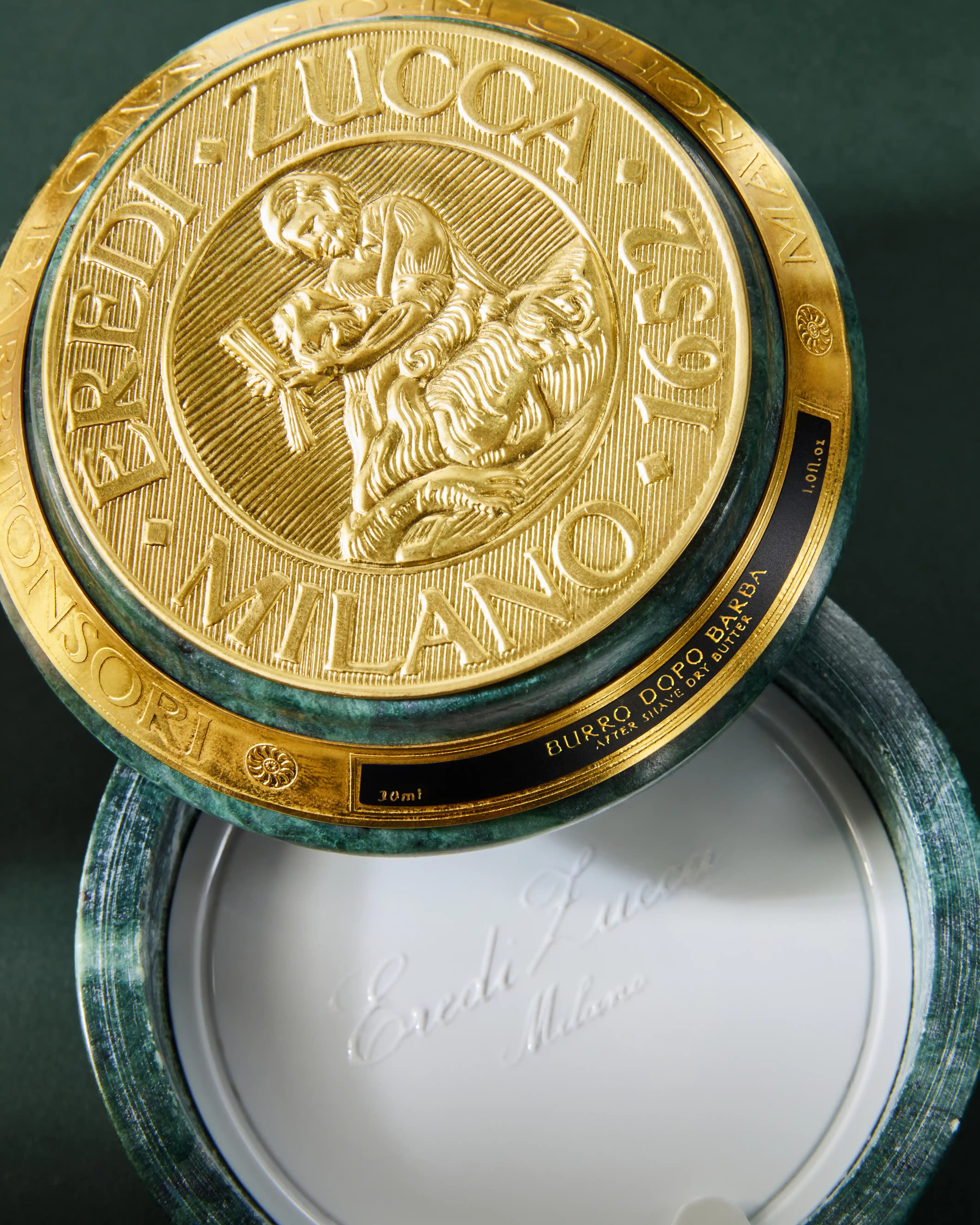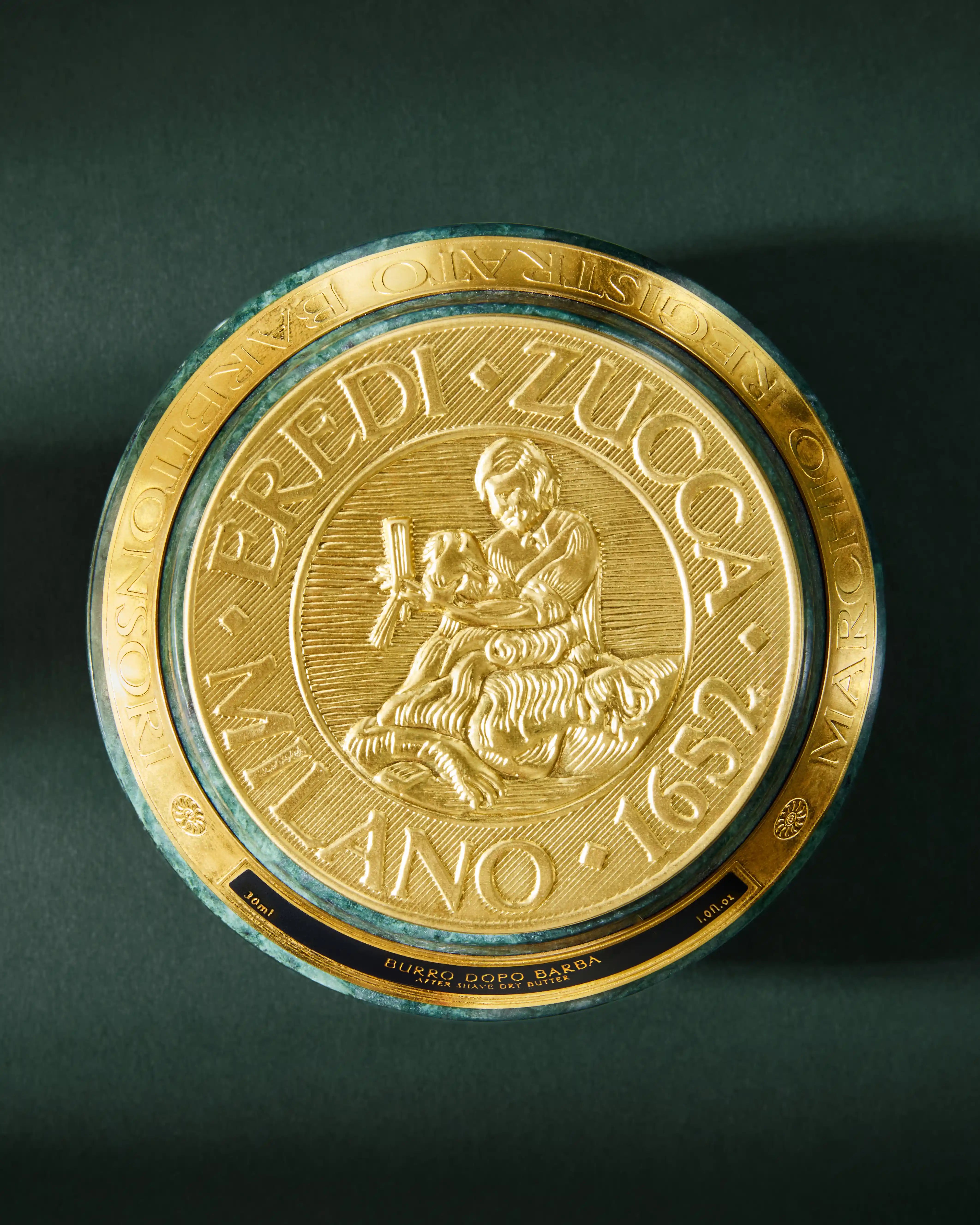 - Contained in a 30 ml jar crafted from Eredi Zucca’s iconic green marble, embellished with a brass medallion with Eredi Zucca logo