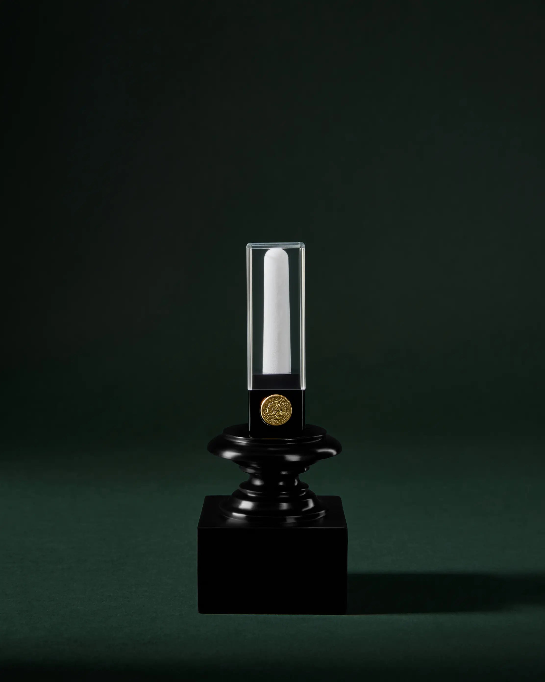 Haemostatic after-shave stick. Presented in an elegant, easily transportable plexiglass case.