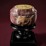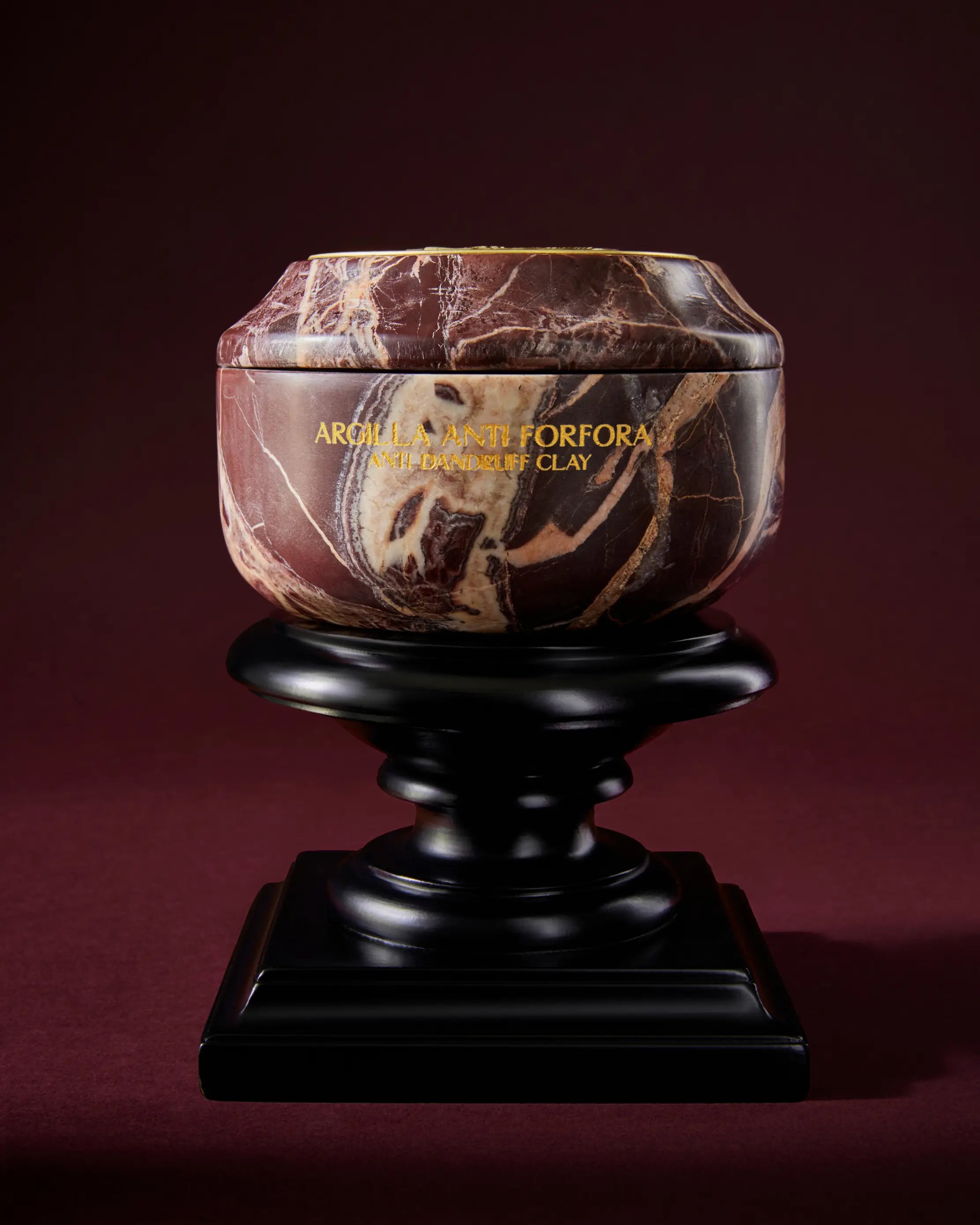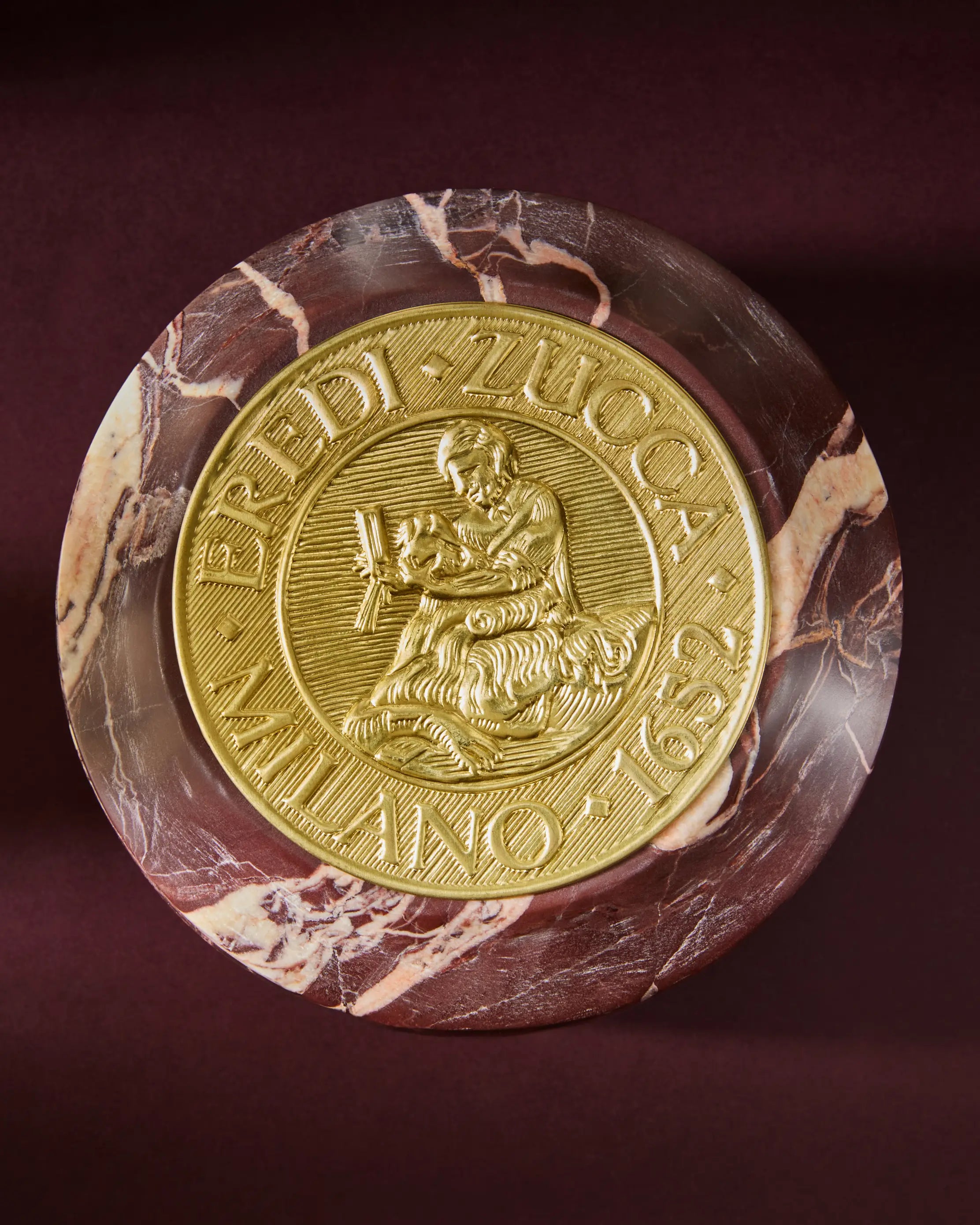 - Contained in a 100 ml jar crafted from Eredi Zucca’s iconic burgundy marble, embellished with a brass medallion with Eredi Zucca logo