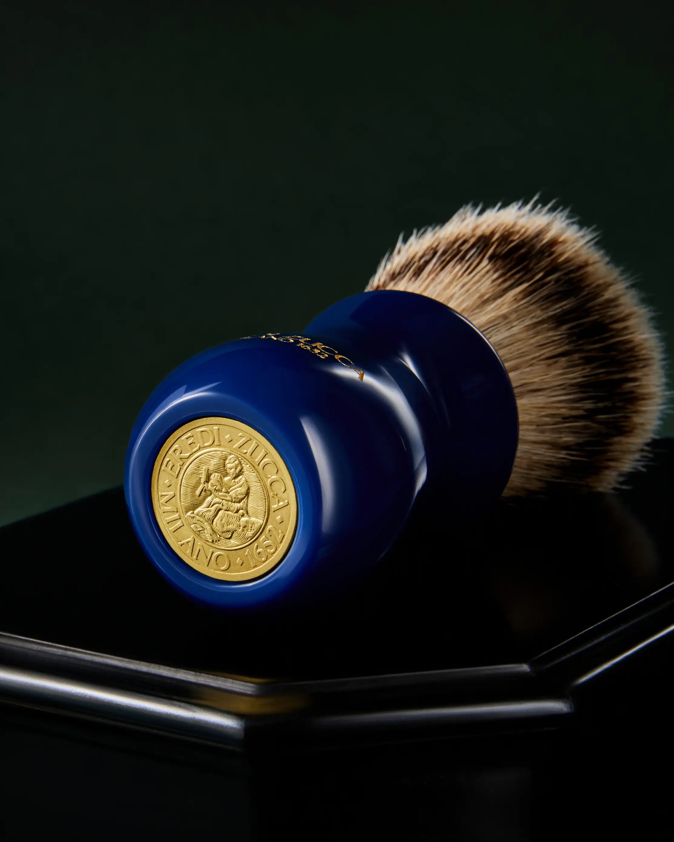 This accessory has been crafted with exceptional care for both materials and details, using the most prestigious of techniques that define the art of Italian craftsmanship. Hand-finished with a glossy blue varnish, its resin handle boasts a harmonious silhouette and a brass Eredi Zucca medallion on the base. A comfortable grip and soft badger bristles make this professional brush a high-precision, robust and effortlessly functional tool.