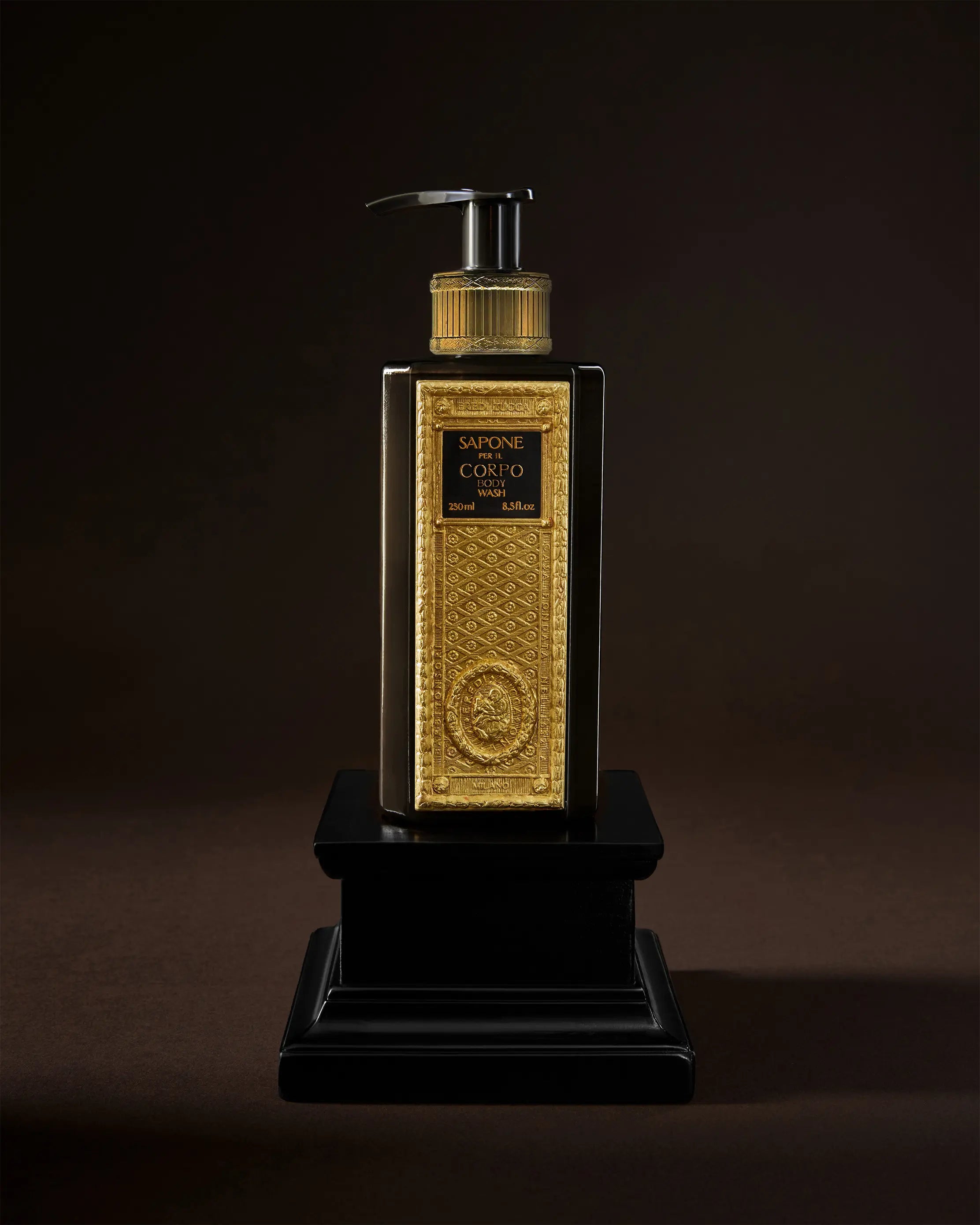 - Contained in a 250 ml brown PETG bottle, embellished with brass Eredi Zucca details