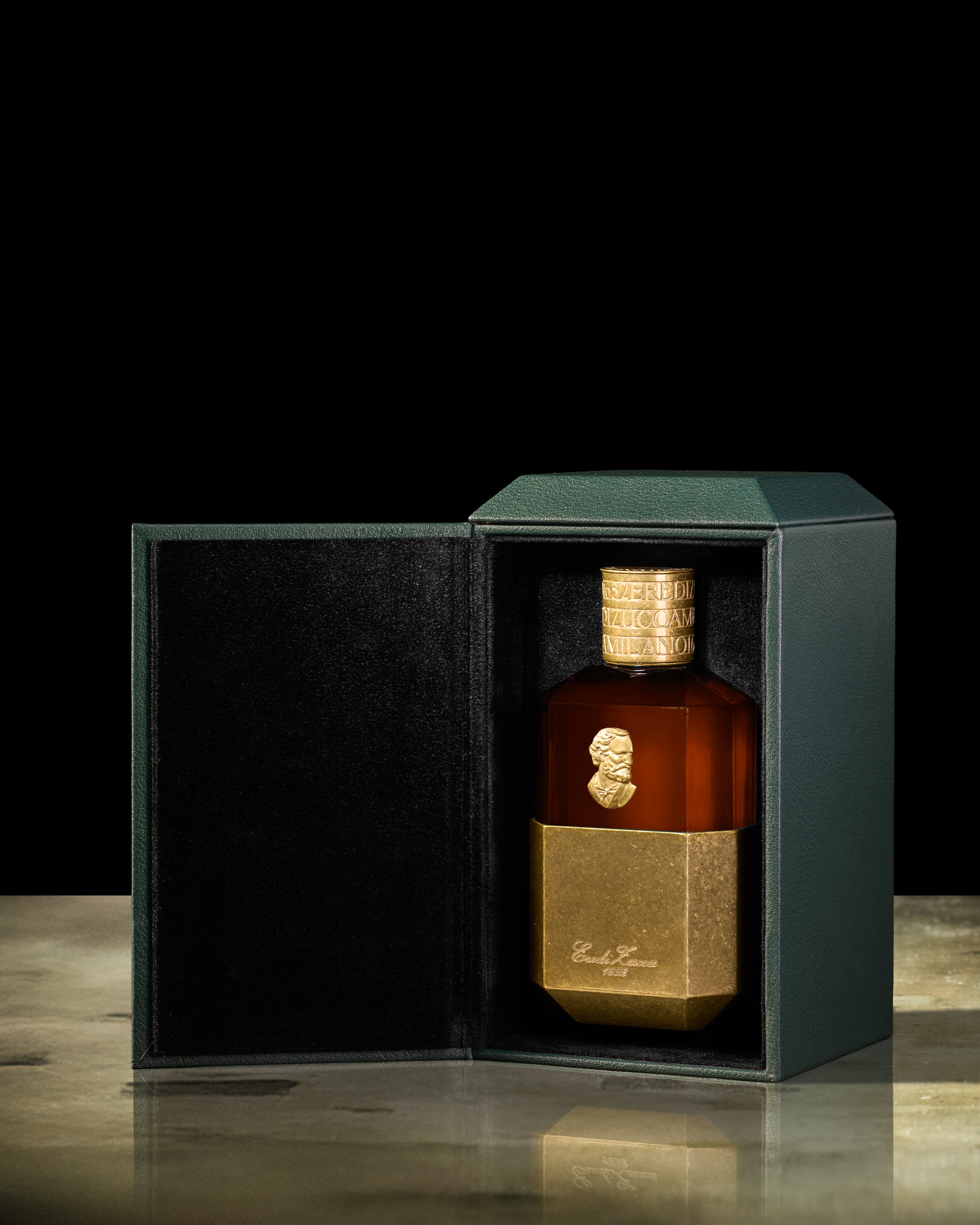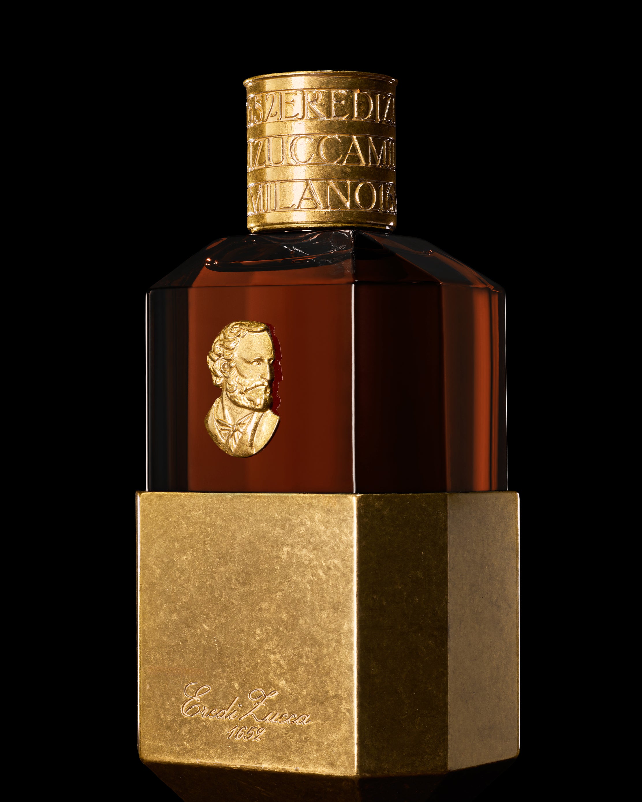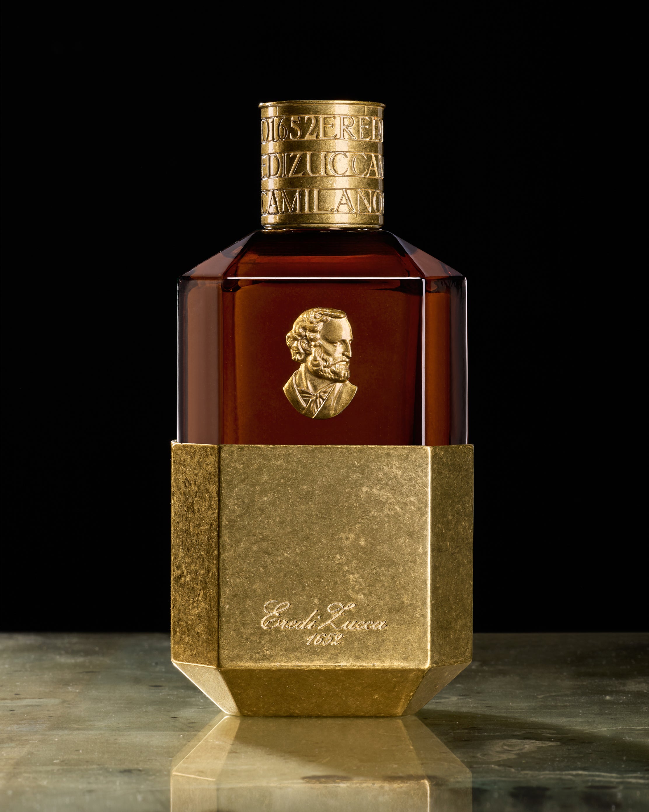 - Housed in a 100 ml diamond-faceted glass flacon recalling antique crystal perfume bottles, encased in brass-finished metal and crowned with a finely engraved cap