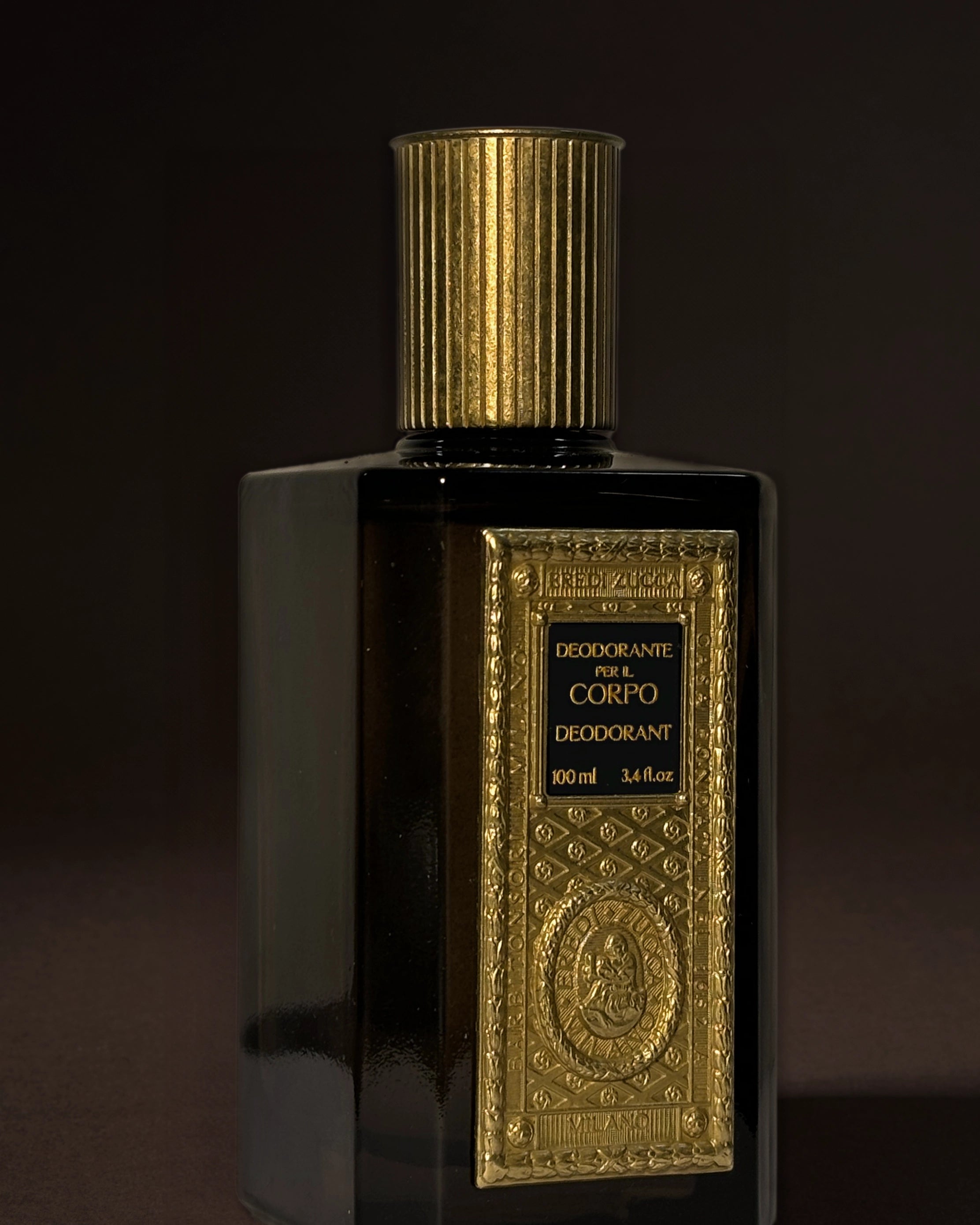 - Contained in a 100 ml brown glass bottle, embellished with brass Eredi Zucca details