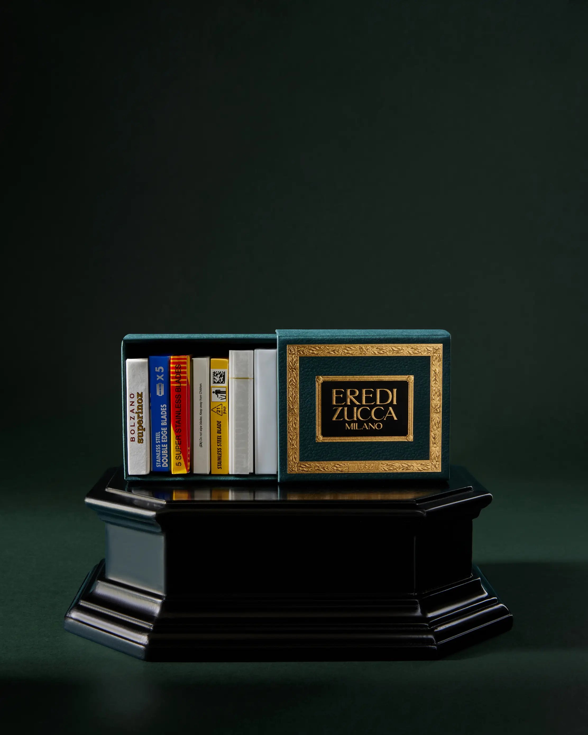 An Eredi Zucca case containing the best blades from seven different countries. For a high-precision, professional shave.