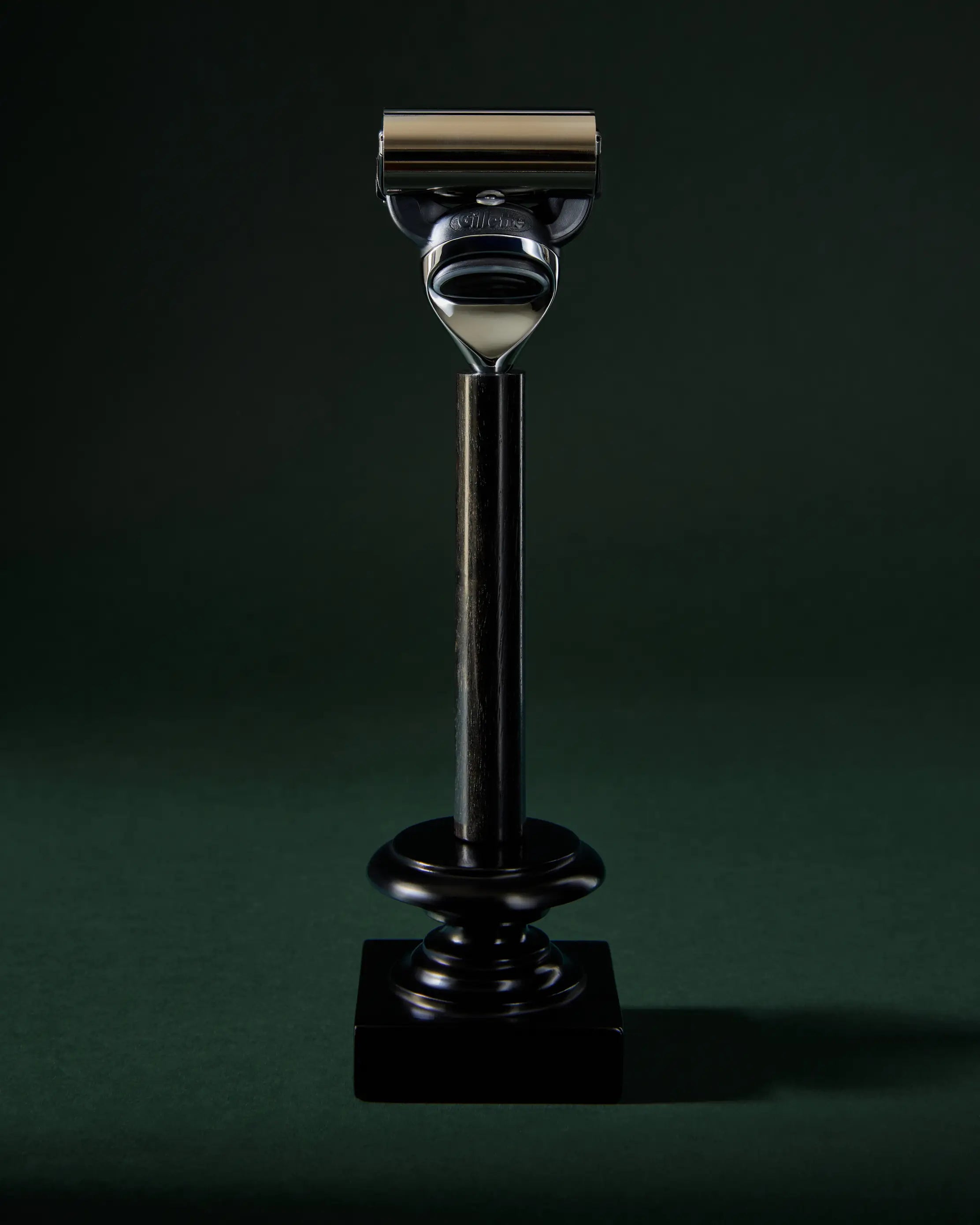 The first step towards a flawless shave is to wash the face with warm water to open up the pores. Apply a generous amount of beard soap and leave for 5 minutes to soften the hairs. Position the safety razor at a 30° to 45° angle and glide the blade gently over the skin, without applying any pressure. Once finished, clean the razor head by simply rinsing it under running water to remove any suds or hairs.