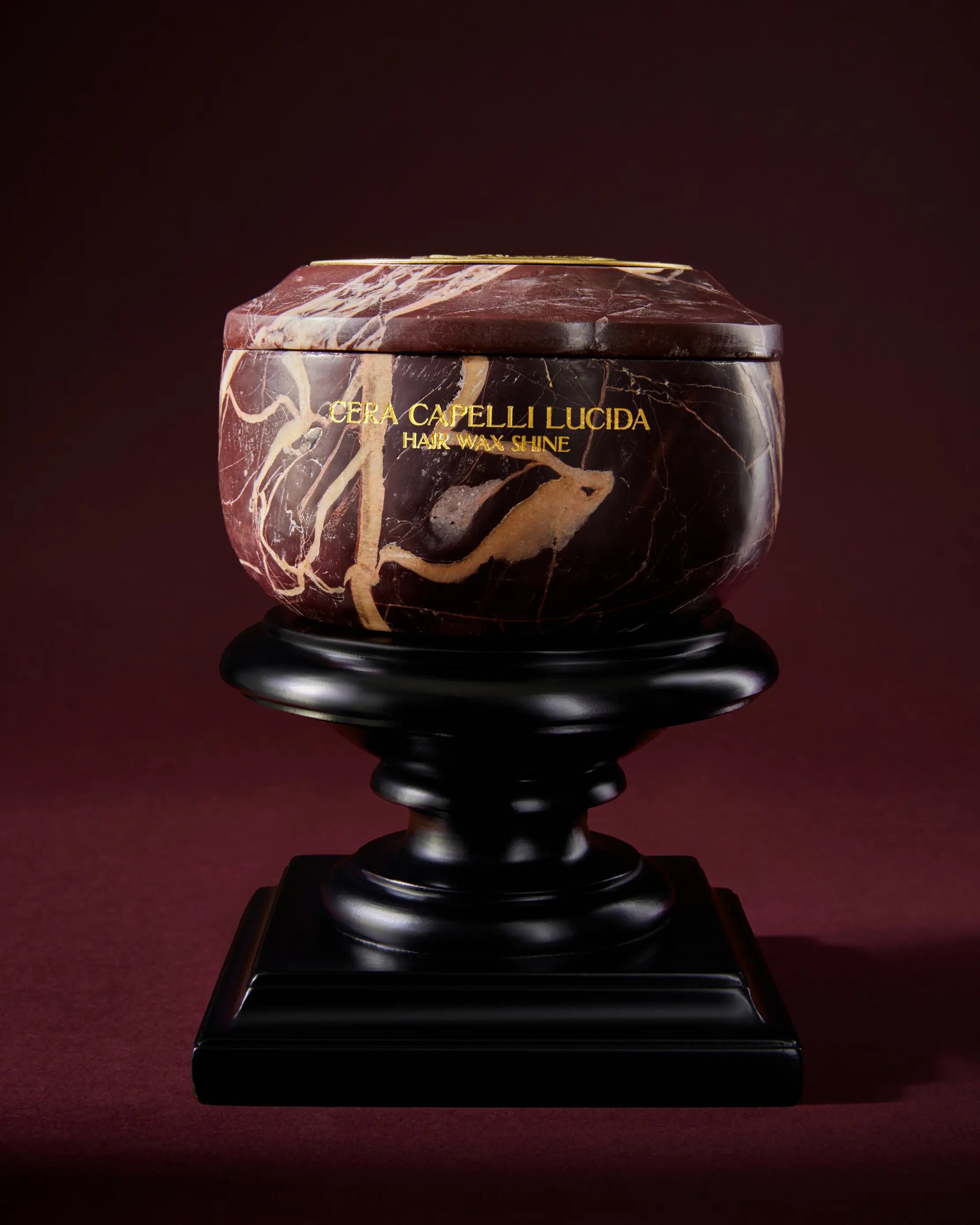 - Contained in a 100 ml jar crafted from Eredi Zucca’s iconic burgundy marble, embellished with a brass medallion with Eredi Zucca logo