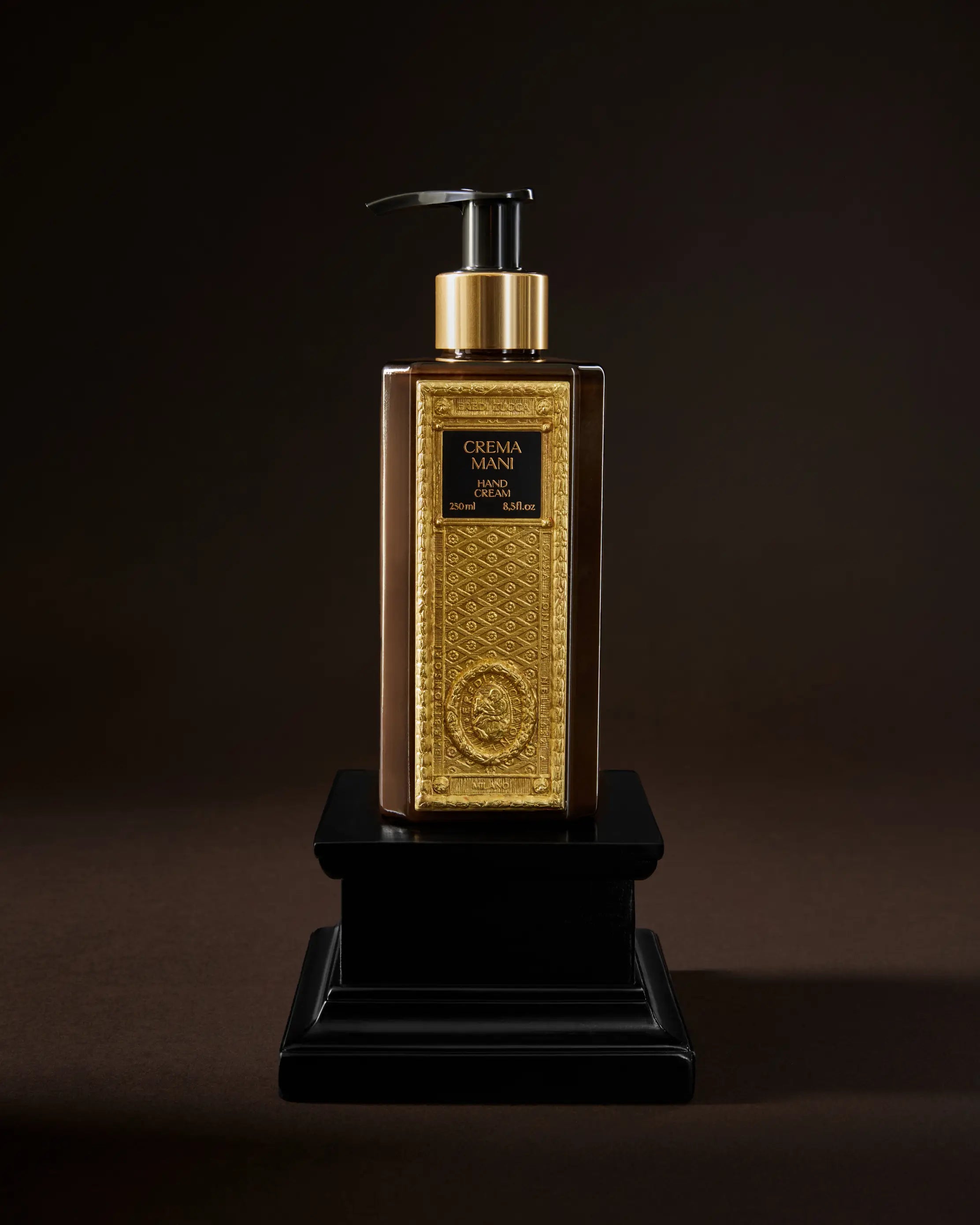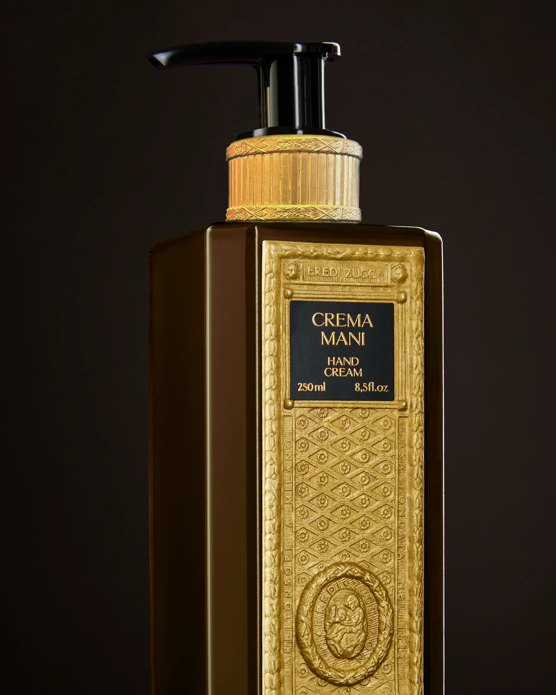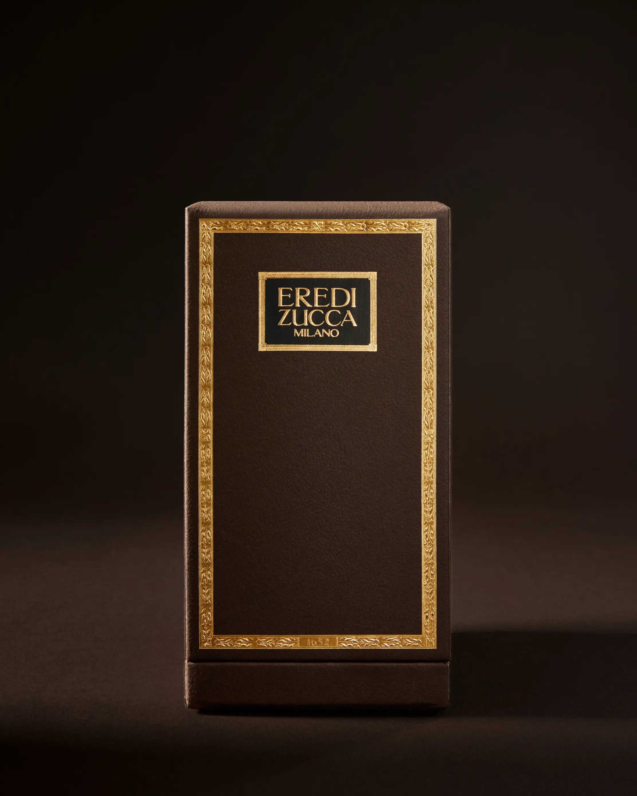 - Contained in a 250 ml brown PETG bottle, embellished with brass Eredi Zucca details