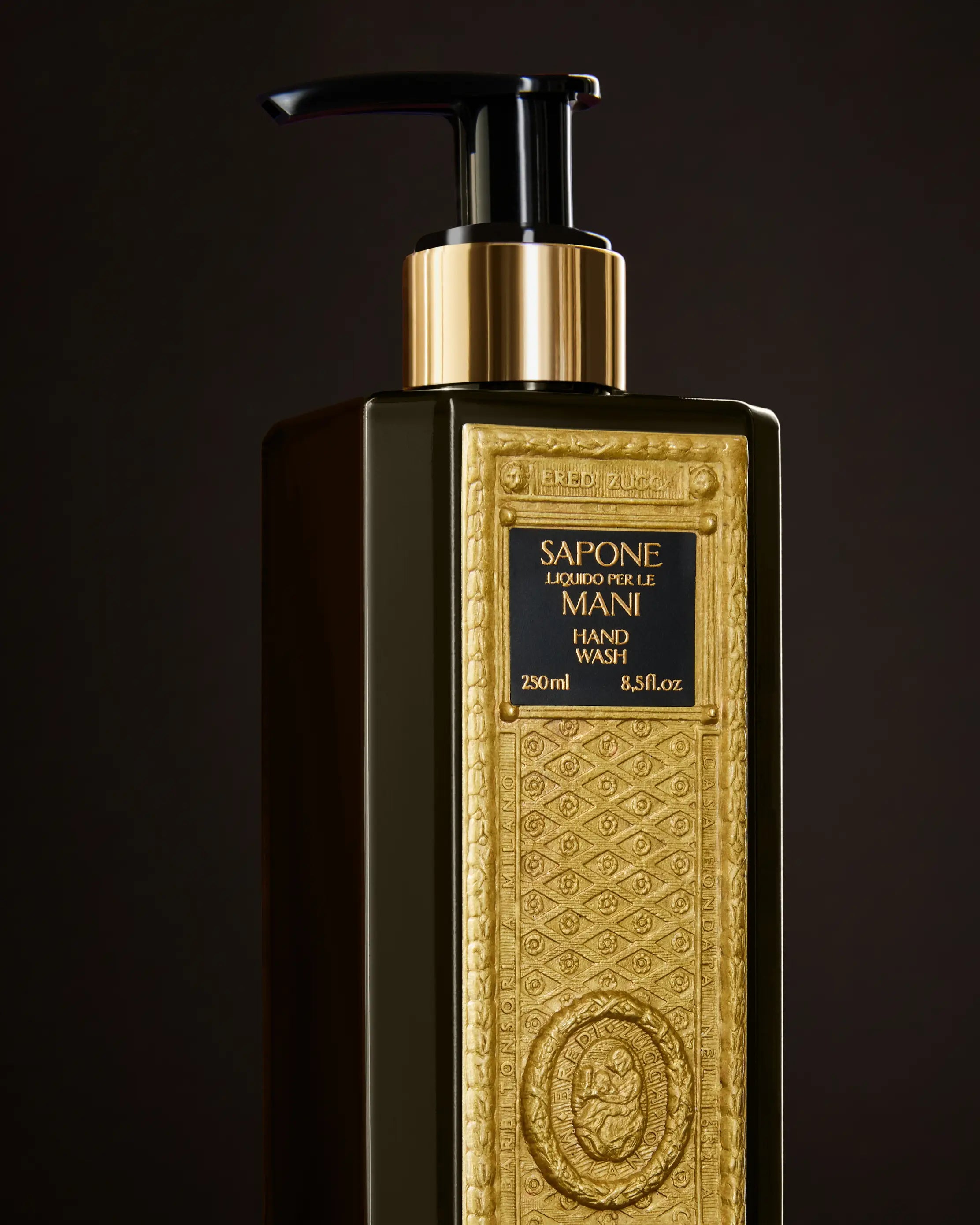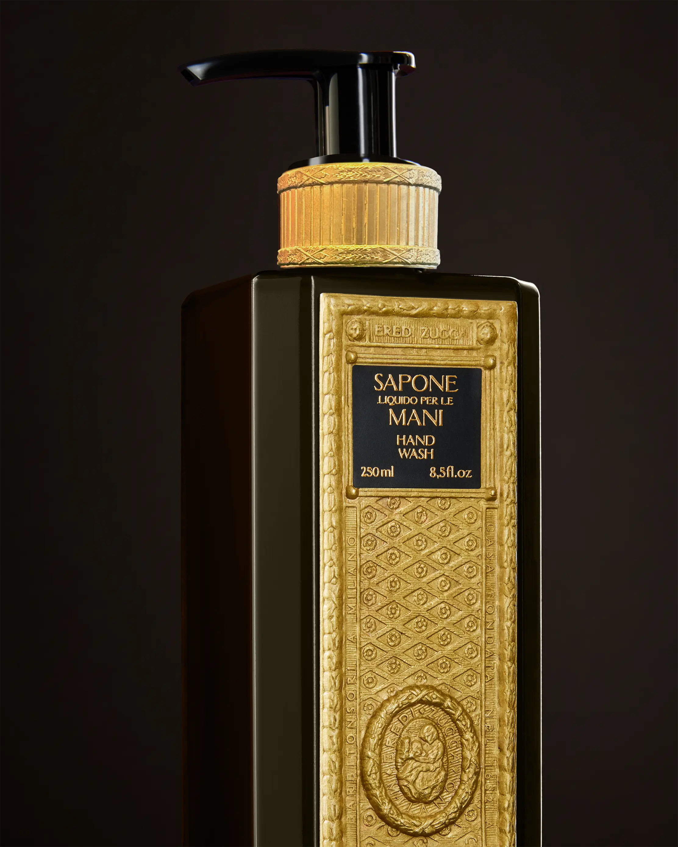- Contained in a 250 ml brown PETG bottle, embellished with brass Eredi Zucca details