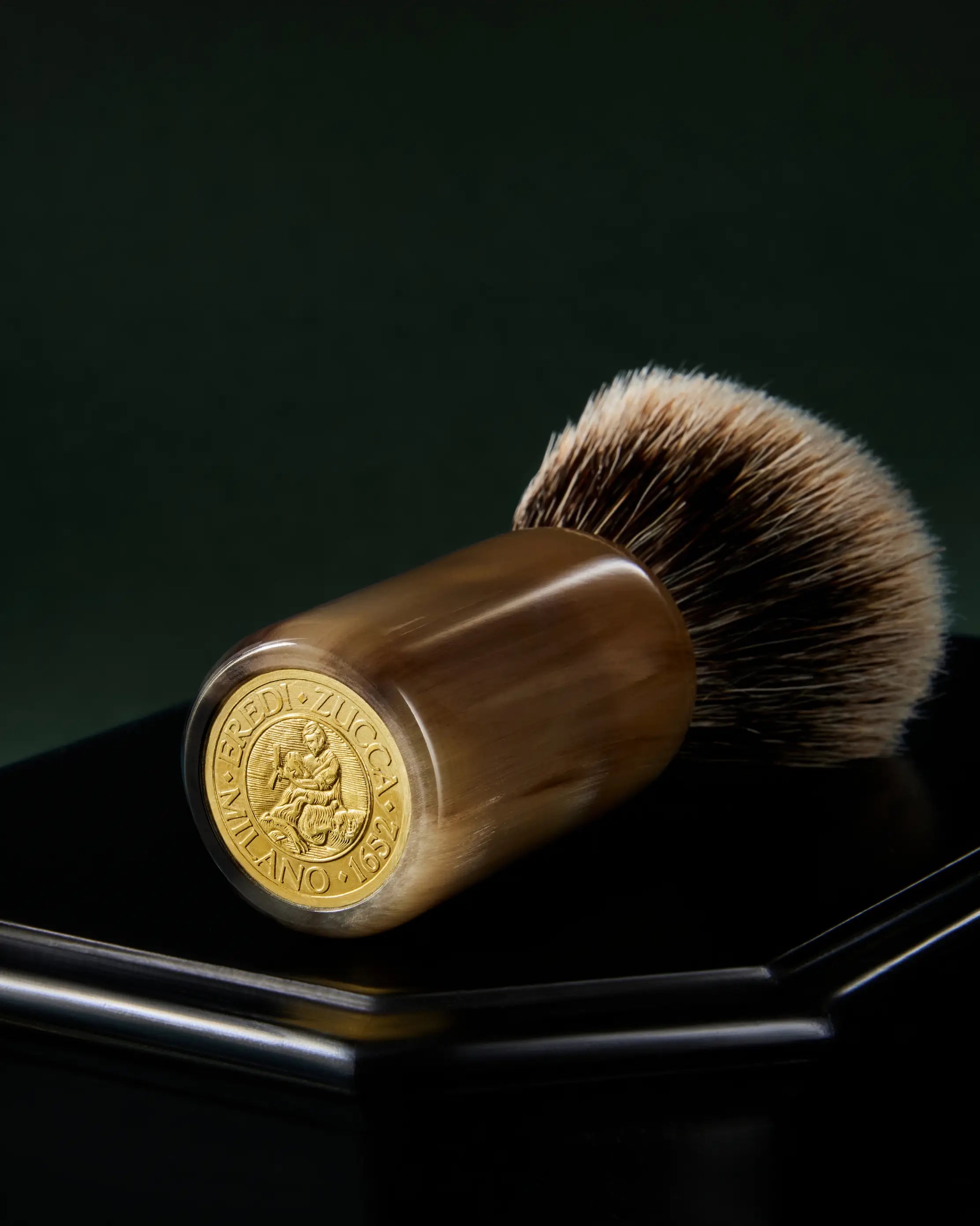 This accessory has been crafted with exceptional care for both materials and details, using the most prestigious of techniques that define the art of Italian craftsmanship. Boasting a harmonious silhouette, its luxurious ox horn handle is embellished with a brass Eredi Zucca medallion on the base. A comfortable grip and soft badger bristles make this professional brush a high-precision, robust and effortlessly functional tool.