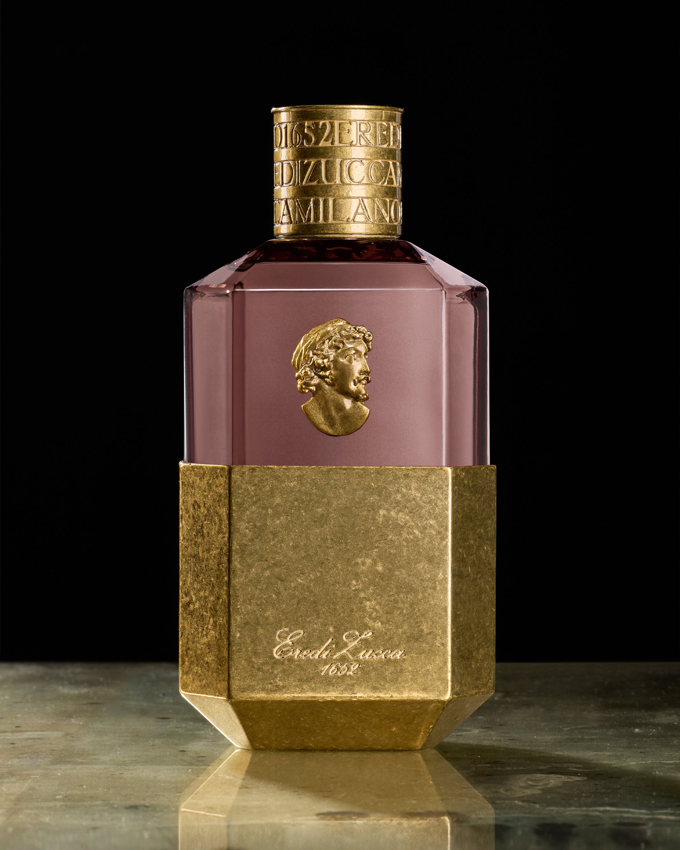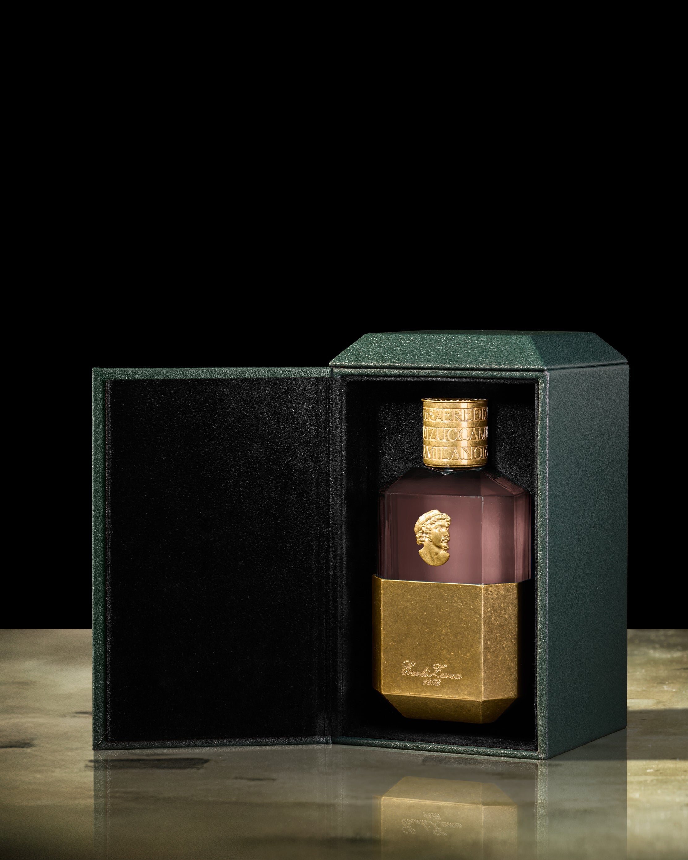 - Housed in a 100 ml diamond-faceted glass flacon recalling antique crystal perfume bottles, encased in brass-finished metal and crowned with a finely engraved cap