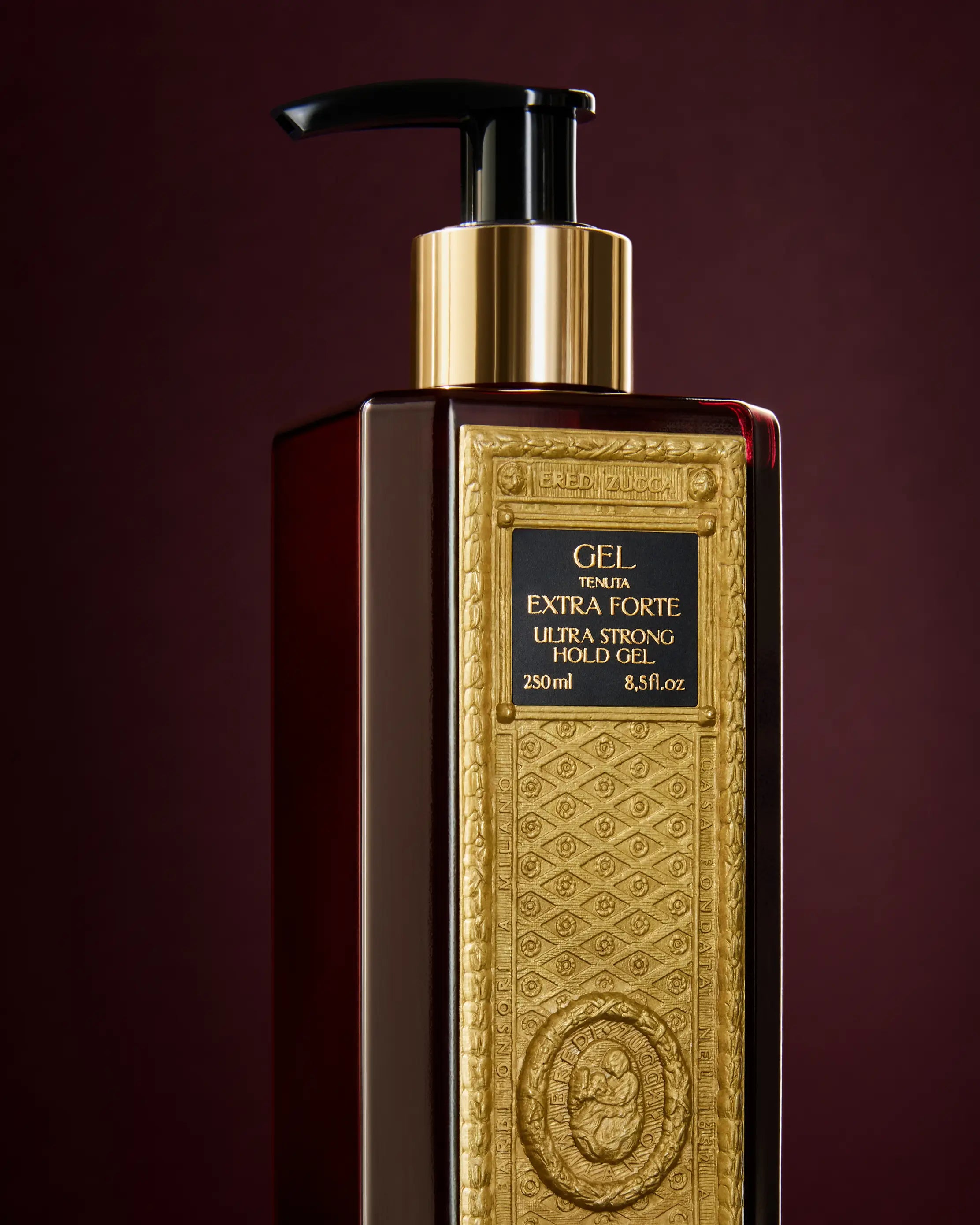 - Contained in a 250 ml burgundy PETG bottle, embellished with brass Eredi Zucca details